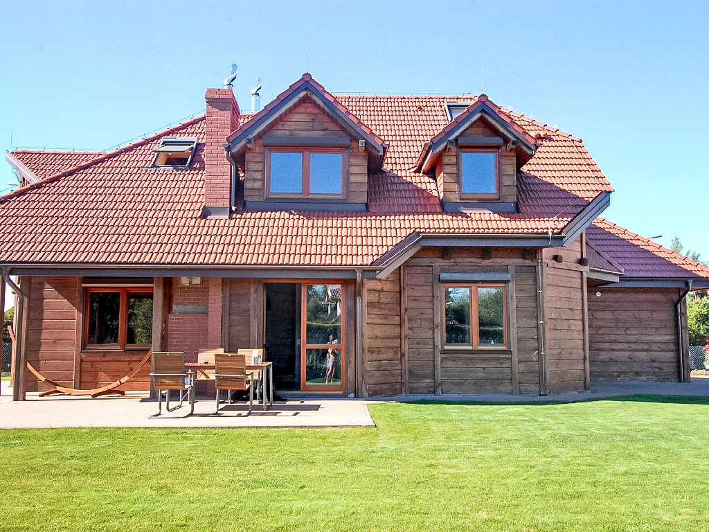Cena od: 9 849 PLN / 7 dni Dom jednorodzinny "Drewniany z bala", wybudowany w roku 2010, otoczony łąkami. W miejscowości, spokojne, słoneczne położenie, 550 m od morza, 500 m od plaży, 1 km od rzeki, otoczony zielenią. Do indywidualnego użytku: działka 1500 m2 (ogrodzona), trawnik. Taras (70 m2), meble ogrodowe, grill. W domu: sauna, suszarka do ubrań. Do dyspozycji: rowery (2). Dojazd do domu. Miejsca parkingowe obok domu na terenie. Sklep spożywczy, supermarket 350 m, restauracja 150 m, przystanek autobusowy 100 m, stacja kolejowa "Wejherowo" 30 km, plaża piaszczysta 400 m, kryty basen 15 km, publiczne kąpielisko 500 m. Pole golfowe 35 km, jazda konna 7 km, plac zabaw dla dzieci 300 m. Znane jeziora w okolicy, łatwo dostępne: Jez. Żarnowieckie 10 km.