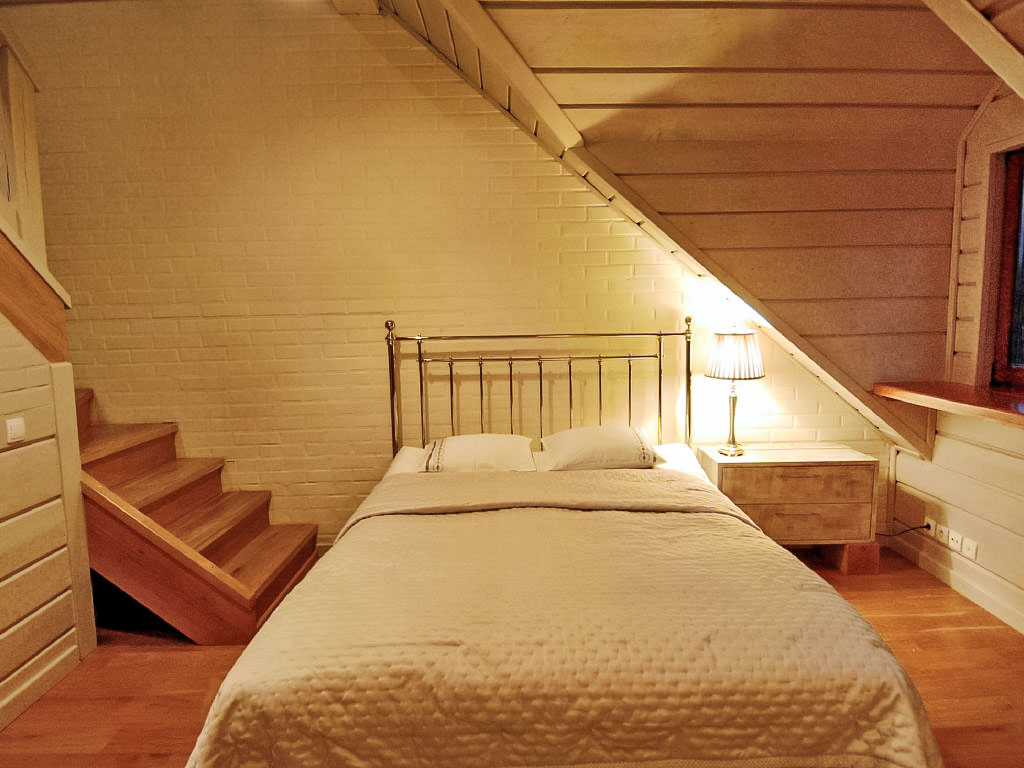 6-pokojowy dom 250 m2 na 2 poziomach. Otwarty salon 32 m2 z kominkiem, TV z płaskim ekranem i DVD. Wyjście na taras. Jadalnia. Duża, otwarta kuchnia 23 m2 (piekarnik, zmywarka do naczyń, 1 płyta indukcyjna, kuchenka mikrofalowa, zamrażarka, ekspres do kawy). Prysznic, oddzielne WC. Na piętrze: 1 mansardowy pokój z 2 łóżkami (90 cm, o długości 200 cm). 1 mansardowy pokój z 1 łóżkiem dwuosobowym (160 cm, o długości 200 cm). 1 mansardowy pokój z 1 łóżkiem dwuosobowym (140 cm, o długości 200 cm). 1 mansardowy pokój z 1 łóżkiem dwuosobowym (140 cm, o długości 200 cm). 1 mansardowy duży pokój, na 2 poziomach z 2 łóżkami (90 cm, o długości 200 cm), 1 łóżkiem podwójnym (160 cm, o długości 200 cm). 2x prysznic/WC. Ogrzewanie gazowe. Taras 70 m2. Meble ogrodowe, grill, leżaki (2). Widok na okolicę. Do dyspozycji: pralka, sauna. Internet (bezprzewodowy LAN [WLAN]). Miejsce parkingowe obok domu. Informacja dodatkowa: odpowiedni dla rodzin. Dom dla niepalących. 1 zwierzak/pies.